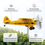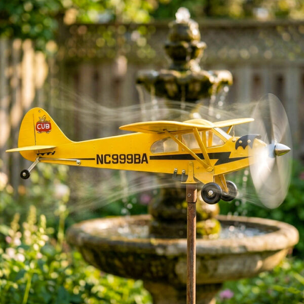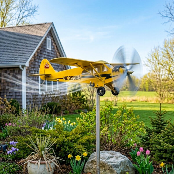 Ein Vintage-Flugzeug, das Ihren Garten zum Leben erweckt Dies ist nicht nur eine Dekoration — es ist eine bewegte Hommage an die klassische Luftfahrt. Inspiriert vom legendären Piper Cub, verwandelt der sorgfältig gefertigte Endlosflug jede Brise in Bewegung. Sobald sich der Propeller dreht, bringt er ein Gefühl von Leichtigkeit, Freiheit und stiller Abenteuerlust in Ihren Außenbereich. Ein Stück, das Blicke auf sich zieht — und sie hält.