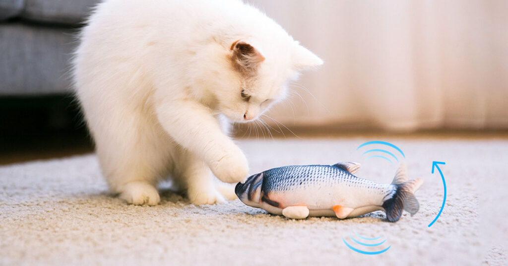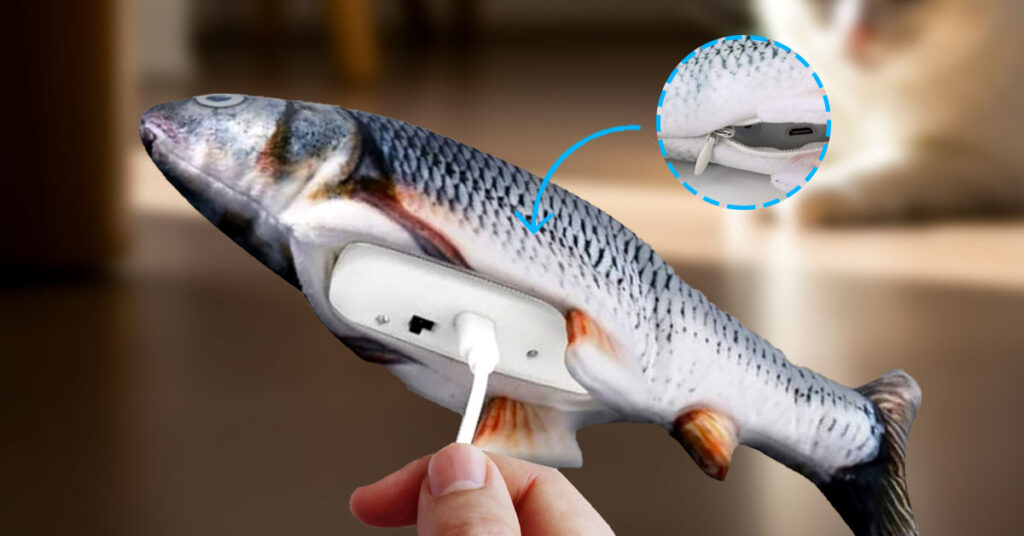 FlippiFisch verfügt über einen integrierten Bewegungssensor, der sofortige Zappelbewegungen bei Berührung auslöst. Wenn Ihre Katze aufhört zu spielen, wird er automatisch still—spart Energie bis zum nächsten Angriff.