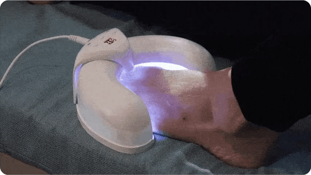 Sie legen Ihre betroffenen Nägel in das Gerät, schalten es ein und führen die Behandlung etwa 7 Minuten täglich durch. Das Laserlicht dringt durch den Nagel und stört die Aktivität der Pilzzellen, während es gleichzeitig hilft, dass der Nagel gesünder nachwächst.