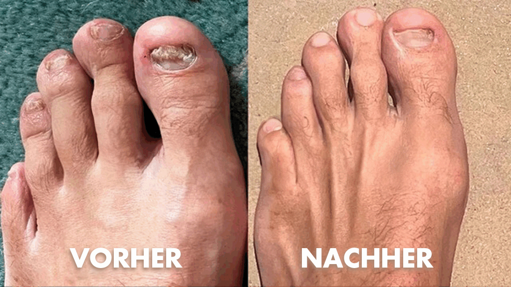 Viele Anwender berichten von ersten sichtbaren Verbesserungen bereits nach 2 bis 3 Wochen regelmäßiger Anwendung – klarere Farbe, reduzierte Verdickung und gesünderes Wachstum. Da Nägel jedoch langsam wachsen, kann die vollständige Heilung je nach Schweregrad des Befalls 3 bis 6 Monate dauern. Wichtig ist die konsequente tägliche Anwendung von 7 Minuten.