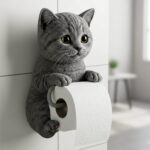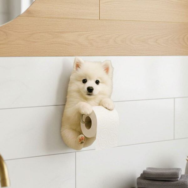 Eine handveredelte Kunstharzfigur hält die Rolle an Ihrer Wand und verleiht dem Bad Charakter – während gleichzeitig wertvolle Ablagefläche freigehalten wird.