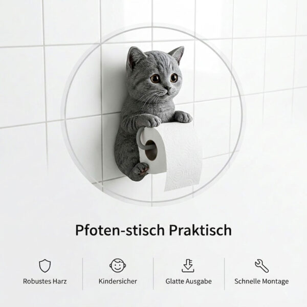 Schluss mit unangenehmem Zerreißen und unbeholfenem Ziehen. Die Pfoten der Tierfigur halten die Rolle im optimalen Winkel, sodass das Papier mit nur einer Hand gleichmäßig abläuft. Ob in Eile oder mit einem Kleinkind auf dem Arm – Sie bekommen genau das, was Sie brauchen, und zwar jedes Mal ohne Aufwand.